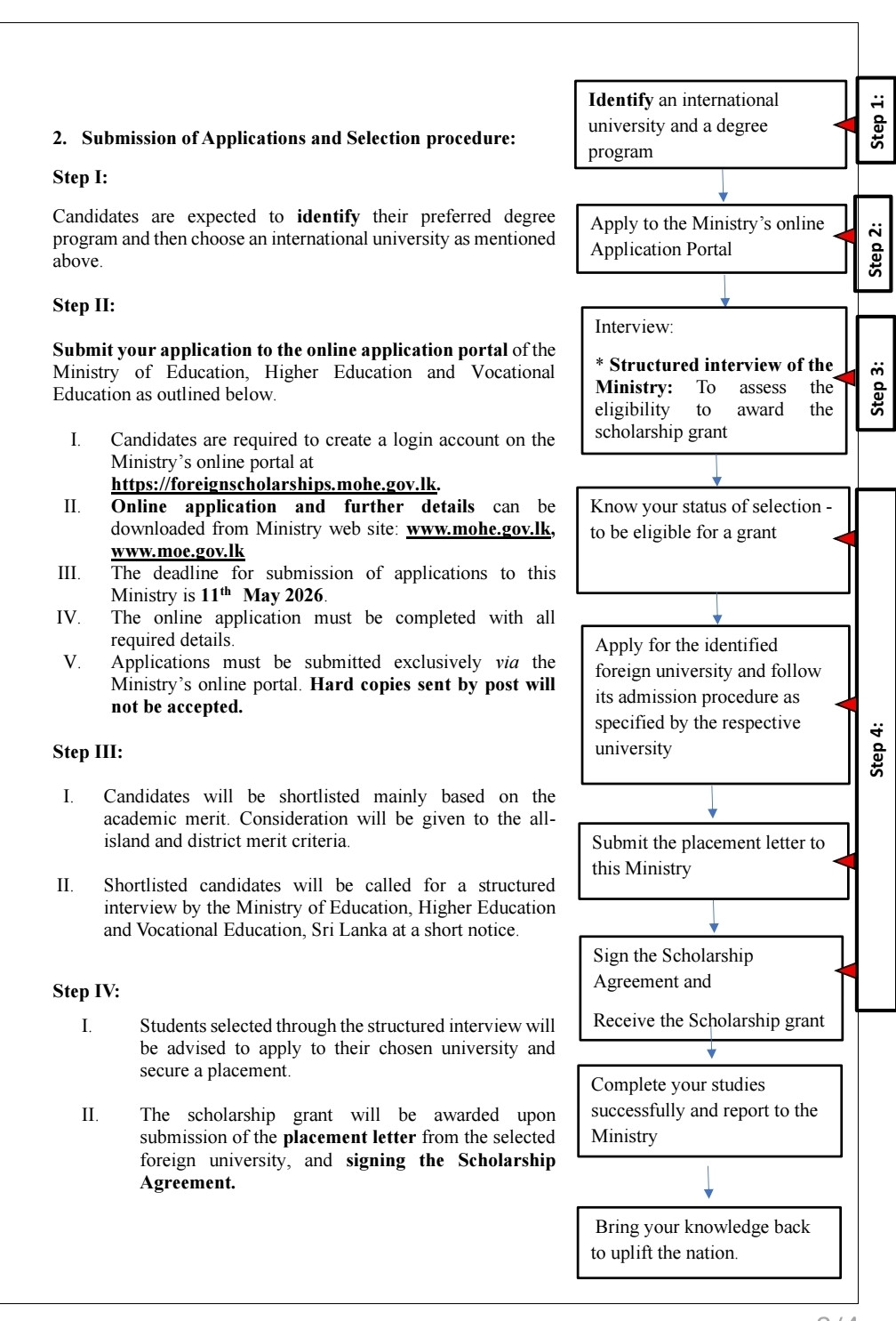 Applications must be submitted online through the Ministry’s portal before 11 May 2026. Candidates will be shortlisted based on academic merit and called for structured interviews.