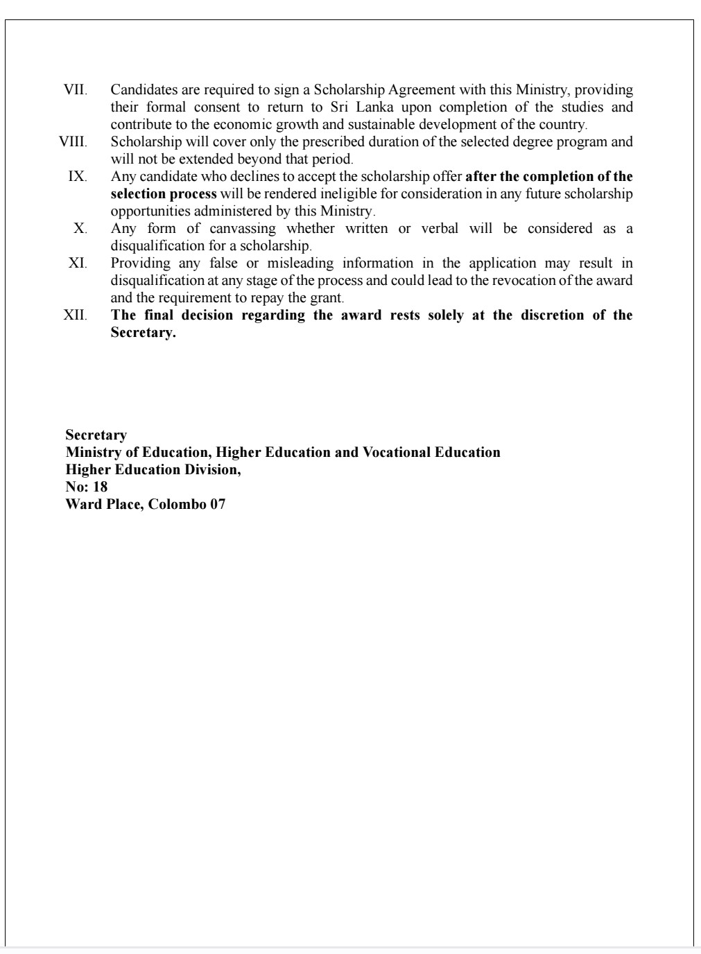 Selected candidates will be required to return to Sri Lanka upon completion of their studies and contribute to national development. (Newswire)