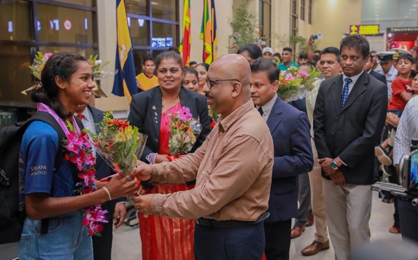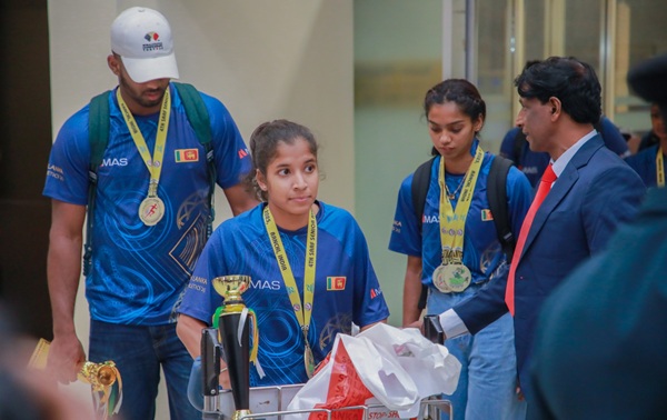 Minister of Youth Affairs and Sports Sunil Kumara Gamage, along with several officials from the Ministry of Sports, were present at the Bandaranaike International Airport in Katunayake to welcome the athletes.