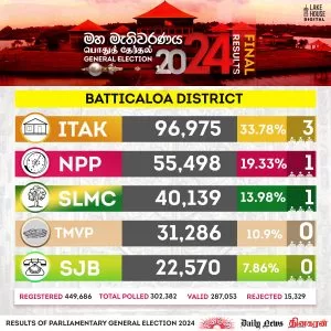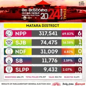 Hambanthota, Matara, Kegalle, N’Éliya, Batticaloa, R’pura won by NPP Local On Nov 15, 2024 Nuwara eliya 300x300 1 0 2 Share Ham The post Hambanthota, Matara, Kegalle, N’Éliya, Batticaloa, R’pura won by NPP appeared first on DailyNews. 0 2 Share FacebookTwitterGoogle+ReddItWhatsAppPinterestEmail