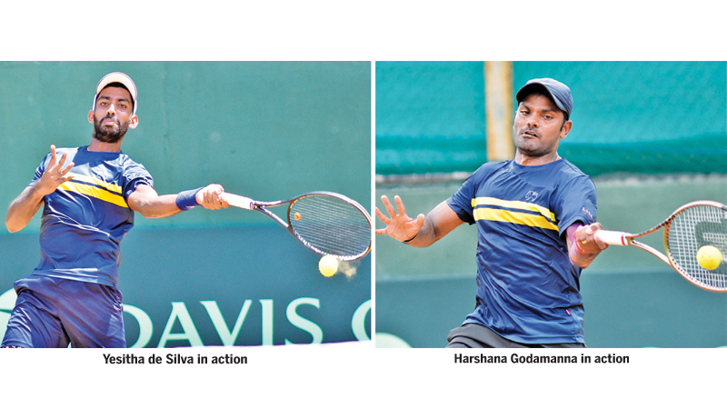 Harshana Godamanna and Yasitha de Silva two experienced Sri Lankan tennis players recorded an easy victories in their singles matches when they beat Bangladesh opponents respectively at the opening day of the Group IV Davis Cup Ruketon tournament played at SLTA courts yesterday.