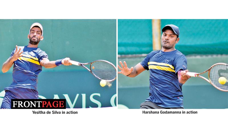 Harshana Godamanna and Yasitha de Silva two experienced Sri Lankan tennis players recorded an easy victories in their singles matches when they beat Bangladesh opponents respectively at the opening day of the Group IV Davis Cup Ruketon tournament played at SLTA courts yesterday.