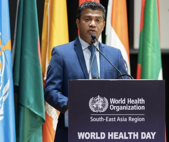 Health and Mass Media Minister Nalinda Jayatissa participated as the chief guest at the World Health Day 2026 commemorations held in New Delhi, India, in his capacity as Chair of the World Health Organization (WHO) Regional Committee for South-East Asia.