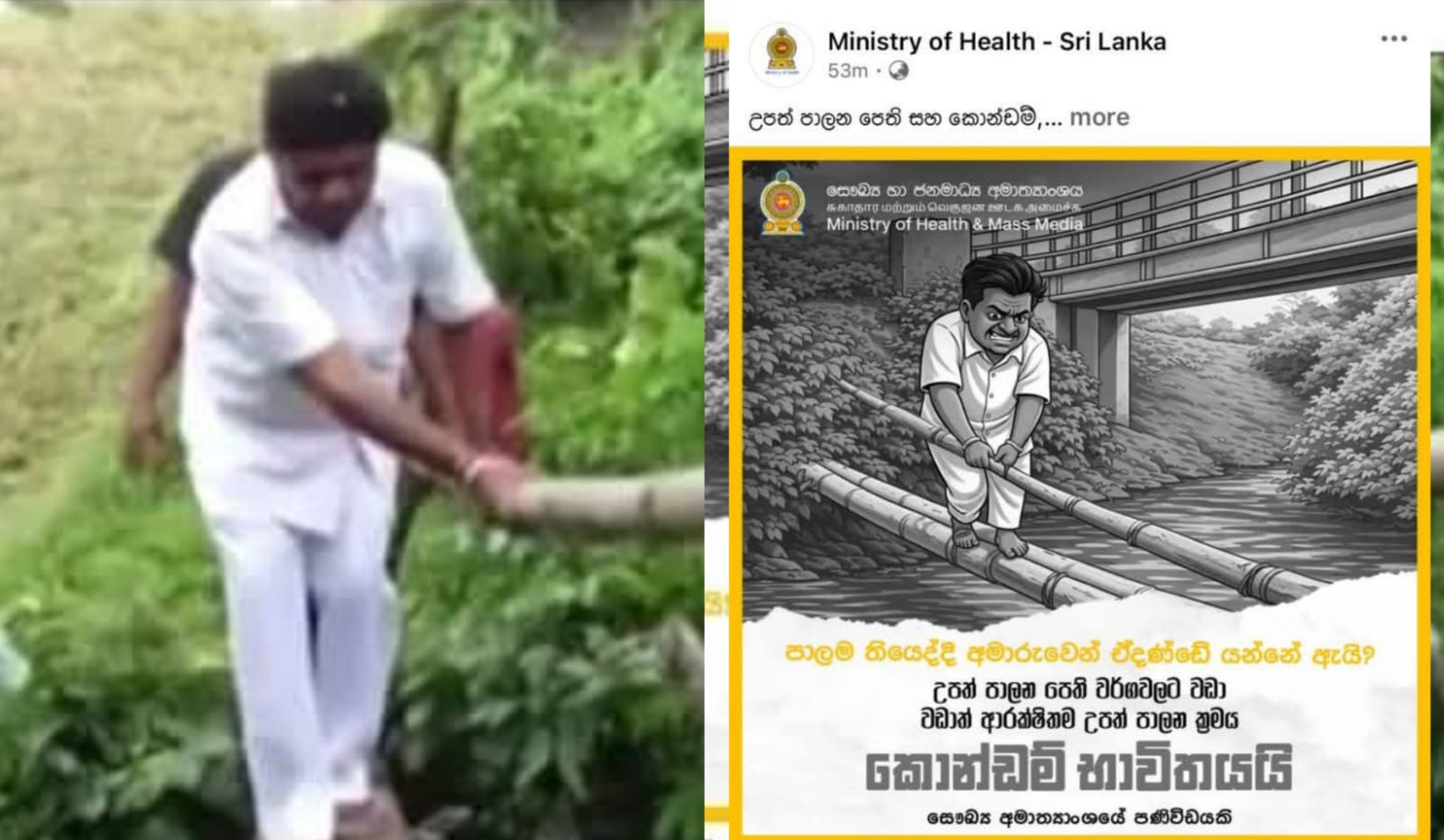 Social media users claimed the illustrated figure bore a resemblance to Opposition Leader Sajith Premadasa, who was previously photographed crossing a makeshift plank bridge during a public event.