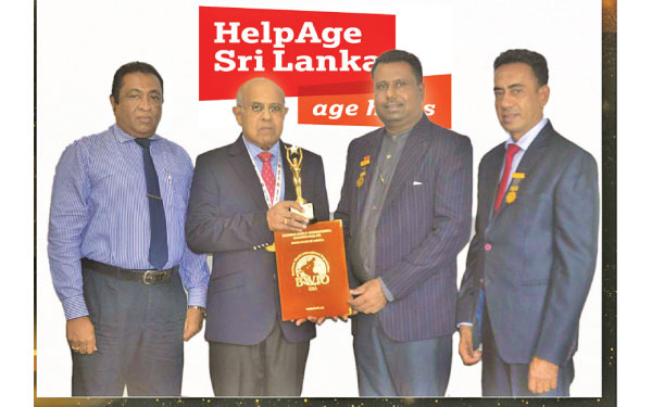 HelpAge, Chairman  Tilak de Zoysa receiving the award. International Chapter –BWIO , Chairman Dr. Anthony Dexter Fernando. BWIO, Country Director Dr. M.A. Abdul Jabbar and HelpAge Executive Director Samantha Liyanawaduge are also in the picture.