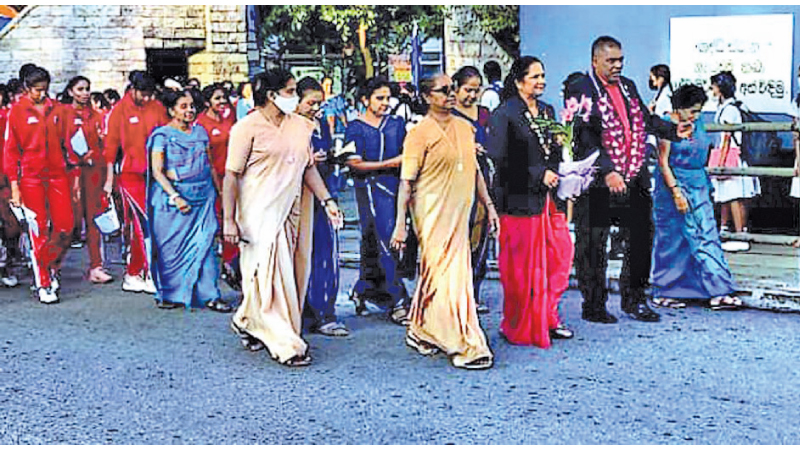 The Principal Rev Sister Priyangani Perera, Deputy Principal Rev. Sister Timali Lowe, the coach Amalka Gunatilleka, Trainer Ananda Wannitilleka were present with Netball teams, OGA officials and parents at the felicitation walk.