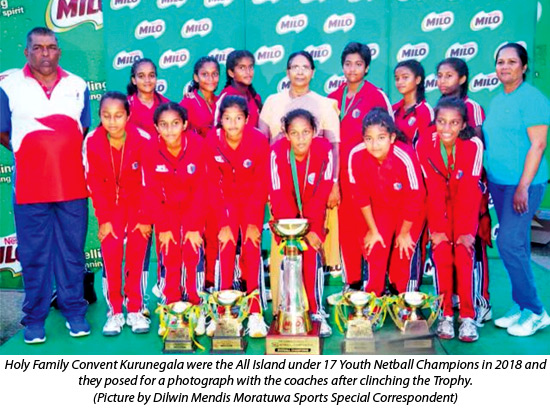 Wannithilake and she commenced strenuous training under them in the under 12 Netball Pool. Same year her team participated in the Divisional, Zonal and Provincial Tournaments and swept the board and at the All Island Under 13 Milo Tournament they clinched the Trophy. Then in 2019 they followed the lower tournament process and winning the tournaments they won the under 15 All Island Milo Tournament and she captained the team.