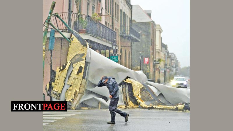 In the city’s famous French Quarter, debris can be seen scattered across the streets.