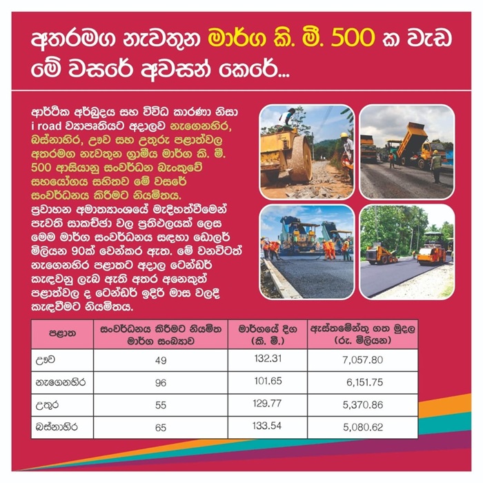 The new phase of development will cover roads that were previously halted across the Eastern, Uva, Western, and Northern Provinces. (Newswire)