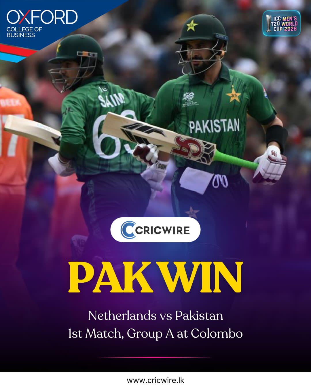 Pakistan (148/7 in 19.3 overs) beat The Netherlands (147) by 3 wickets at the SSC in the opening match of the 2026 ICC Men’s T20 World Cup
