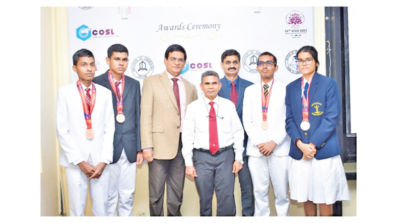 Students who won the silver and bronze medals at the 54th International Chemistry Olympiad (IChO) 2022 representing Sri Lanka were recognized at an award ceremony held recently at the IChemC headquarters, Adamantane House in Rajagiriya.