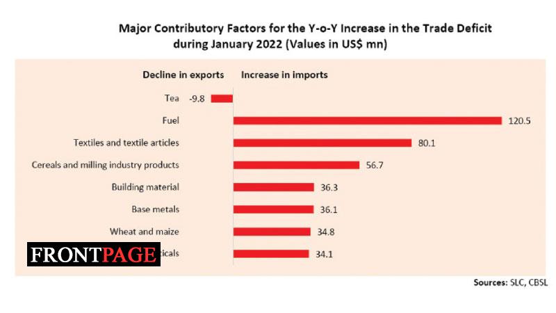 Import expenditure continued to expand, in spite of high earnings from exports exceeding US dollars 1.0 billion for the eighth consecutive month, thereby widening the deficit in the trade account in January 2022, compared to January 2021 to US dollars 859 million in January 2022, compared to the deficit of US dollars 655 million recorded in January 2021, with higher increase in imports.