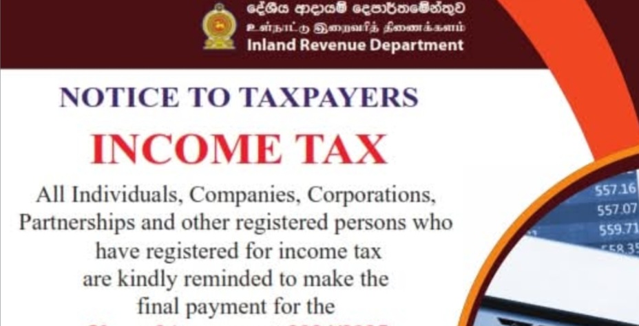 The directive applies to individuals, companies, corporations, partnerships and other registered entities. According to the IRD, the final payment can be made through the Online Tax Payment Platform (OTPP) or at any branch of the Bank of Ceylon.