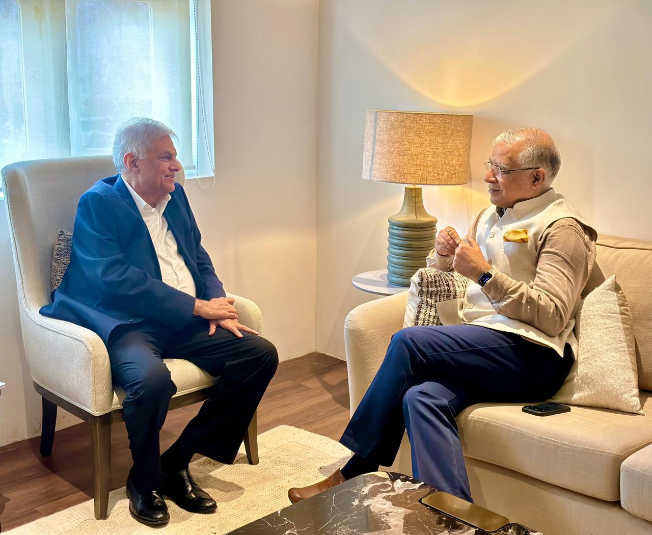 The Indian High Commission in Sri Lanka said High Commissioner Santosh Jha paid a courtesy call on former President Ranil Wickremesinghe.