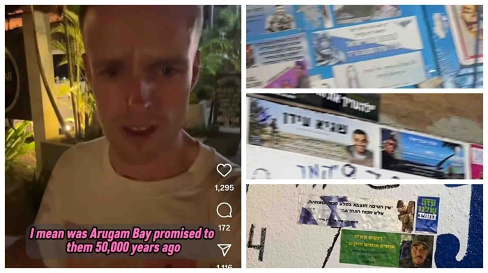 Sharing footage of various restaurants in the area, Tom Monagle pointed out the use of Hebrew language at many places instead of Sinhala or Tamil, with some places even displaying pro-Israel Defence Forces propaganda stickers.