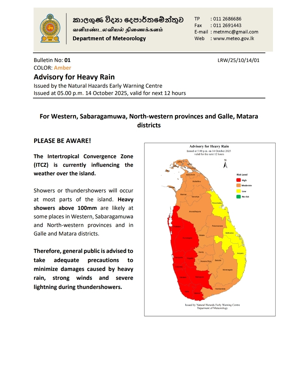 ITCZ influence : Red alert for Heavy rain for 9 districts