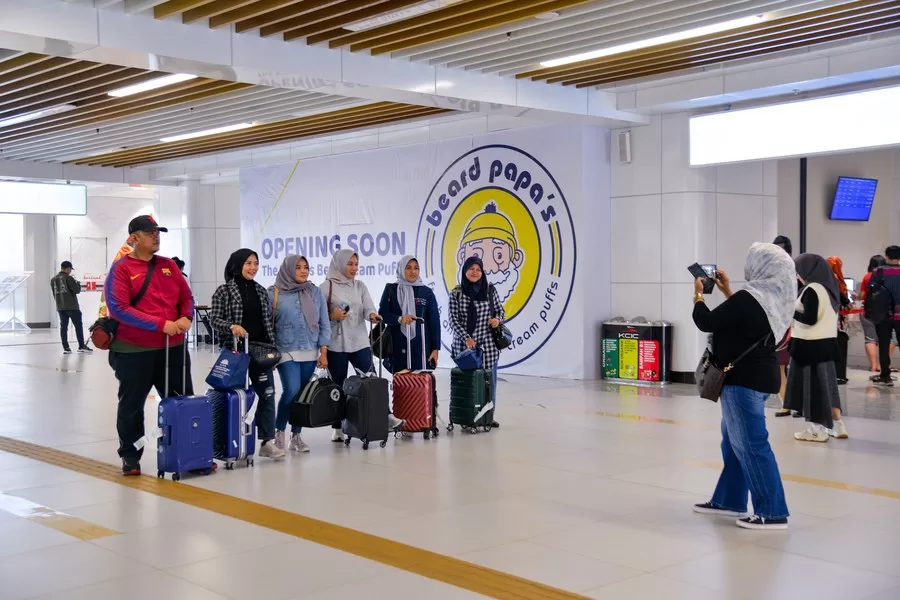 Passengers pose for photos at the Halim Station in Jakarta, Indonesia, Jan. 17, 2024.(Xinhua/Xu Qin)