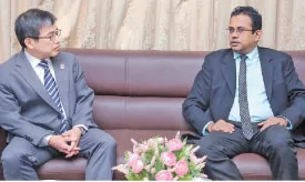 Japanese Ambassador to Sri Lanka, Isomata Akio at the recent meeting with Sri Lanka Bureau of Foreign Employment Chairman Koshala Wickramasinghe.