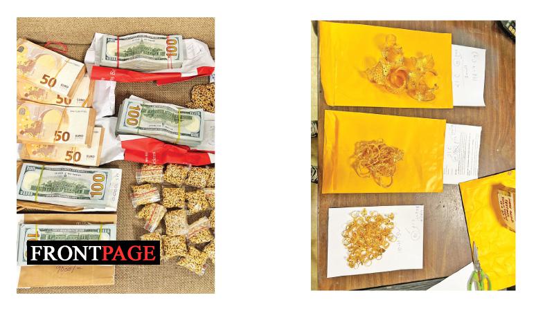 “8.5 kilogrammes of jewellery and bisected gold biscuits as well as US$75,000 and €18,000 in foreign currency, which were hidden in the luggage and the trouser pockets of the suspects,” a Customs official said.