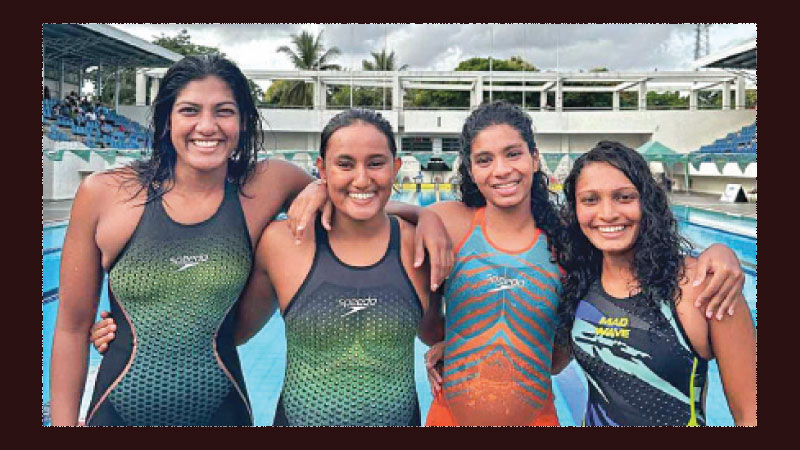 On Day Three of the National Swimming Championships held at the Sugathadasa Stadium Swimming Complex, Killer Whale Aquatics’ (KWA) women’s 200m Medley Relay team put on an outstanding performance, breaking the national record by over five seconds.