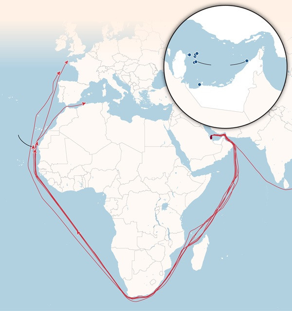 Final LNG tankers from the Gulf en route since the Strait of Hormuz closed