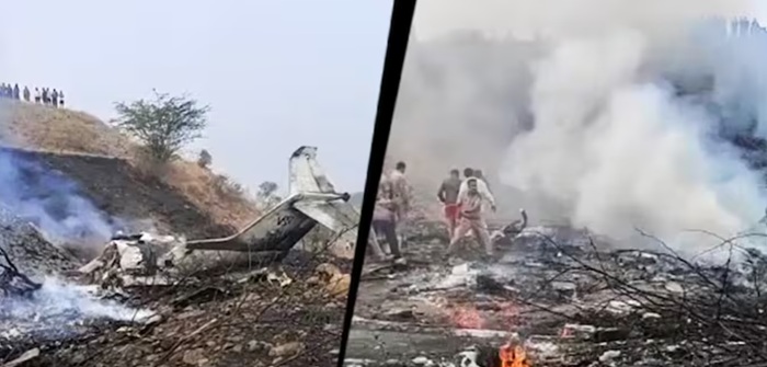 The entire aircraft was reduced to ashes, with visuals showing it completely shattered and debris scattered all around. Initial visuals showed a massive blaze and smoke billowing from the area in Baramati.