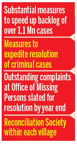 Furthermore, to fortify and enhance the efficiency of the judicial process, a comprehensive set of eight new bills is set to be submitted to Parliament, he said. Efforts are underway to establish a reconciliation society within each village, where government officials and politicians do not play a direct role. The activities of these societal initiatives, referred to as reconciliation societies, are guided by the preferences of elders and religious leaders within the respective villages. The responsibilities encompass the independent execution of tasks such as infrastructure development, including road construction and provision of electricity, rendering political involvement unnecessary, the Minister said.