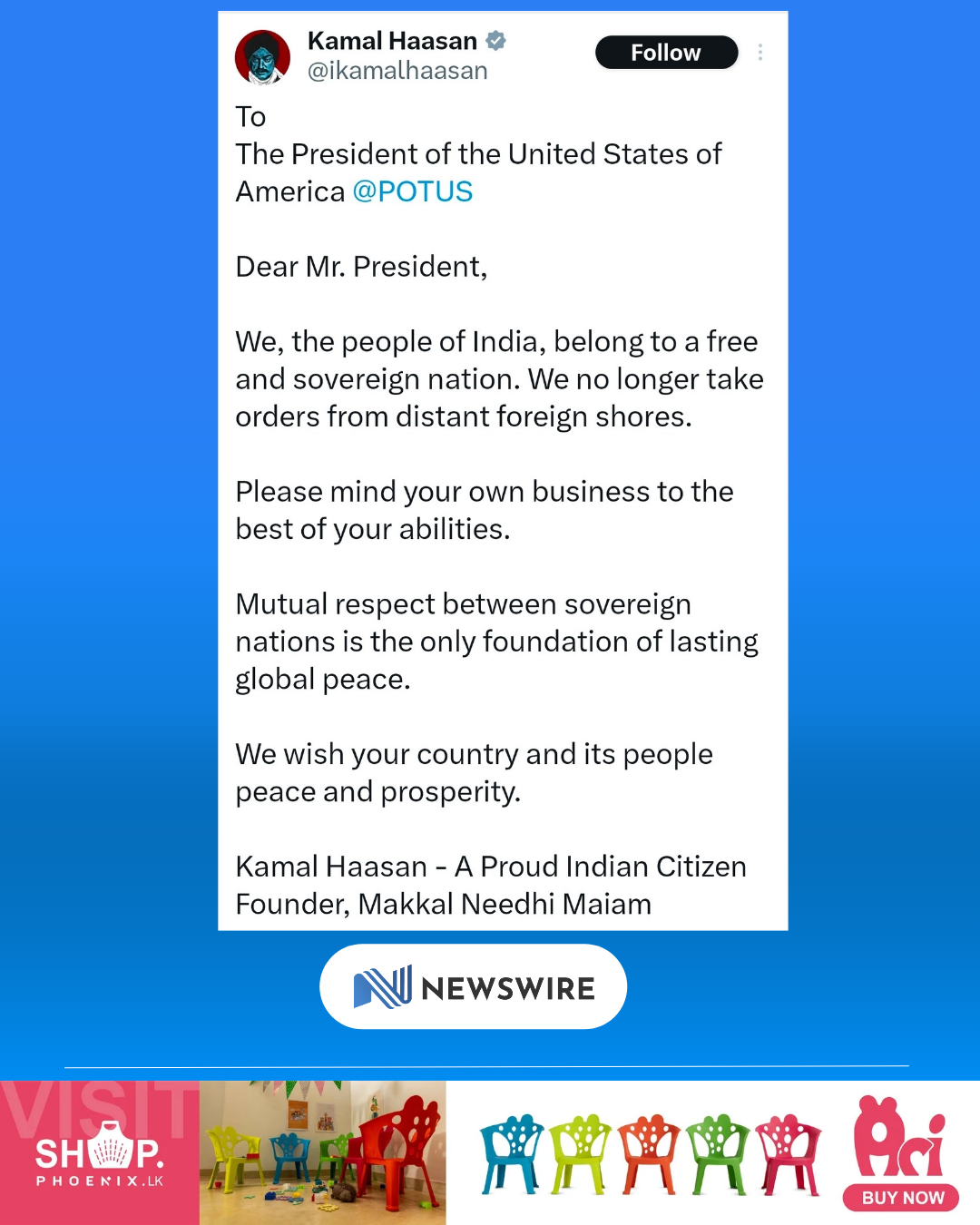 The post ‘Mind your own business,’ Kamal Haasan tells Donald Trump appeared first on Newswire.