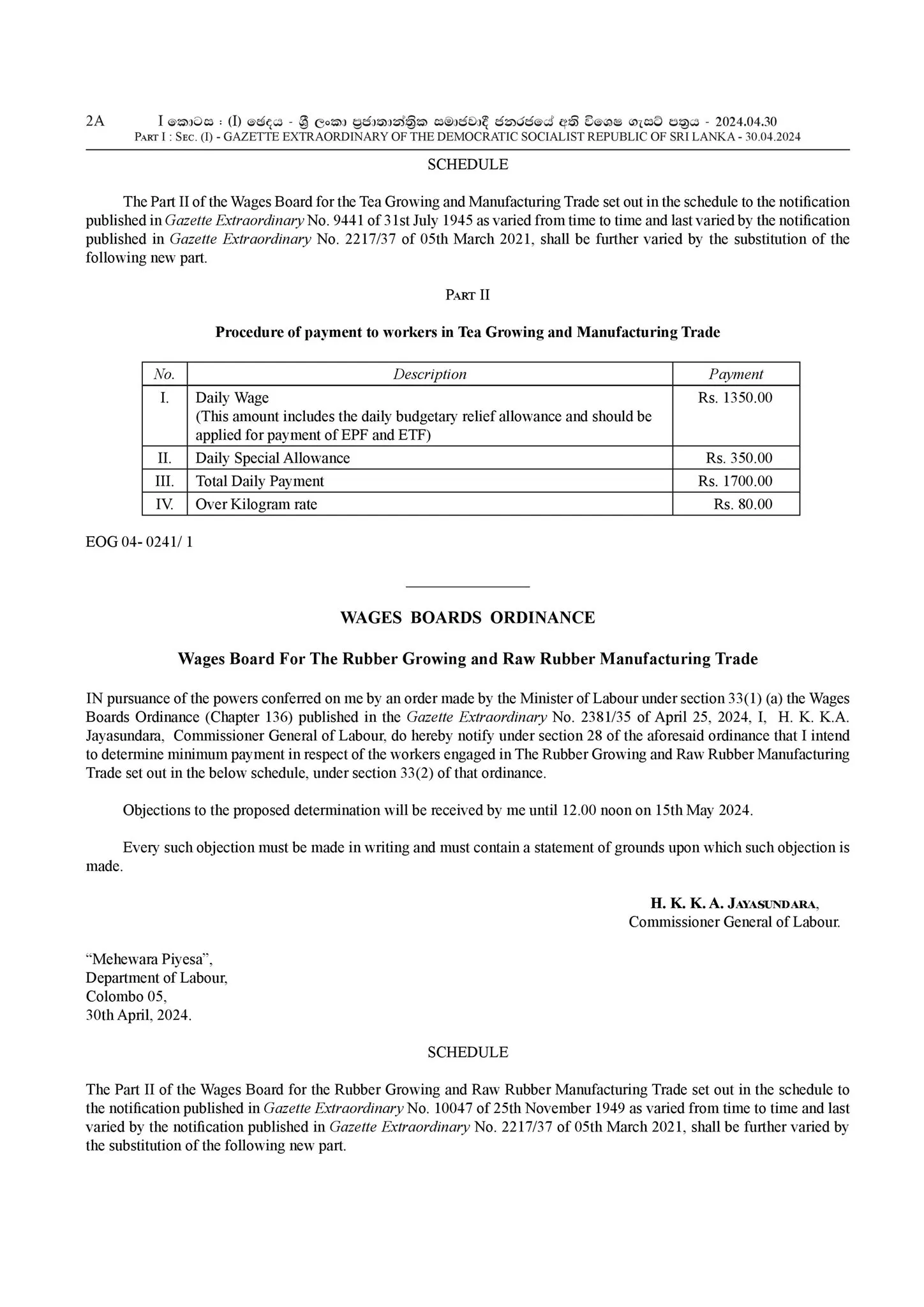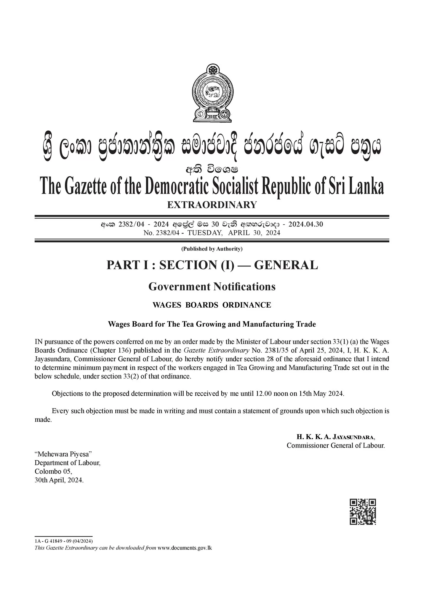 An Extraordinary gazette has been issued on increasing the daily wage of plantation workers.