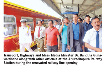The renovated section from Anuradhapura to Omanthai on the northern railway line was officially opened by Transport, Highways and Mass Media Minister Dr. Bandula Gunawardhana Thursday (13).