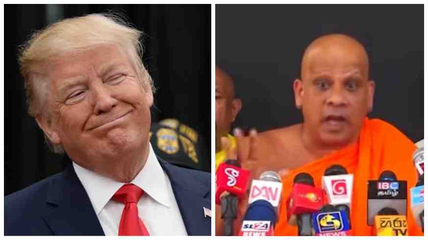 The Chief Incumbent of Mihintale Rajamaha Viharaya, Walawahangunawewe Dhammarathana Thera, while criticising the government’s proposed education reforms, claimed he could meet Donald Trump to explain how the government is destroying the country, adding that a US tax on Sri Lanka was reduced after a student known to him approached the Trump family using personal connections.