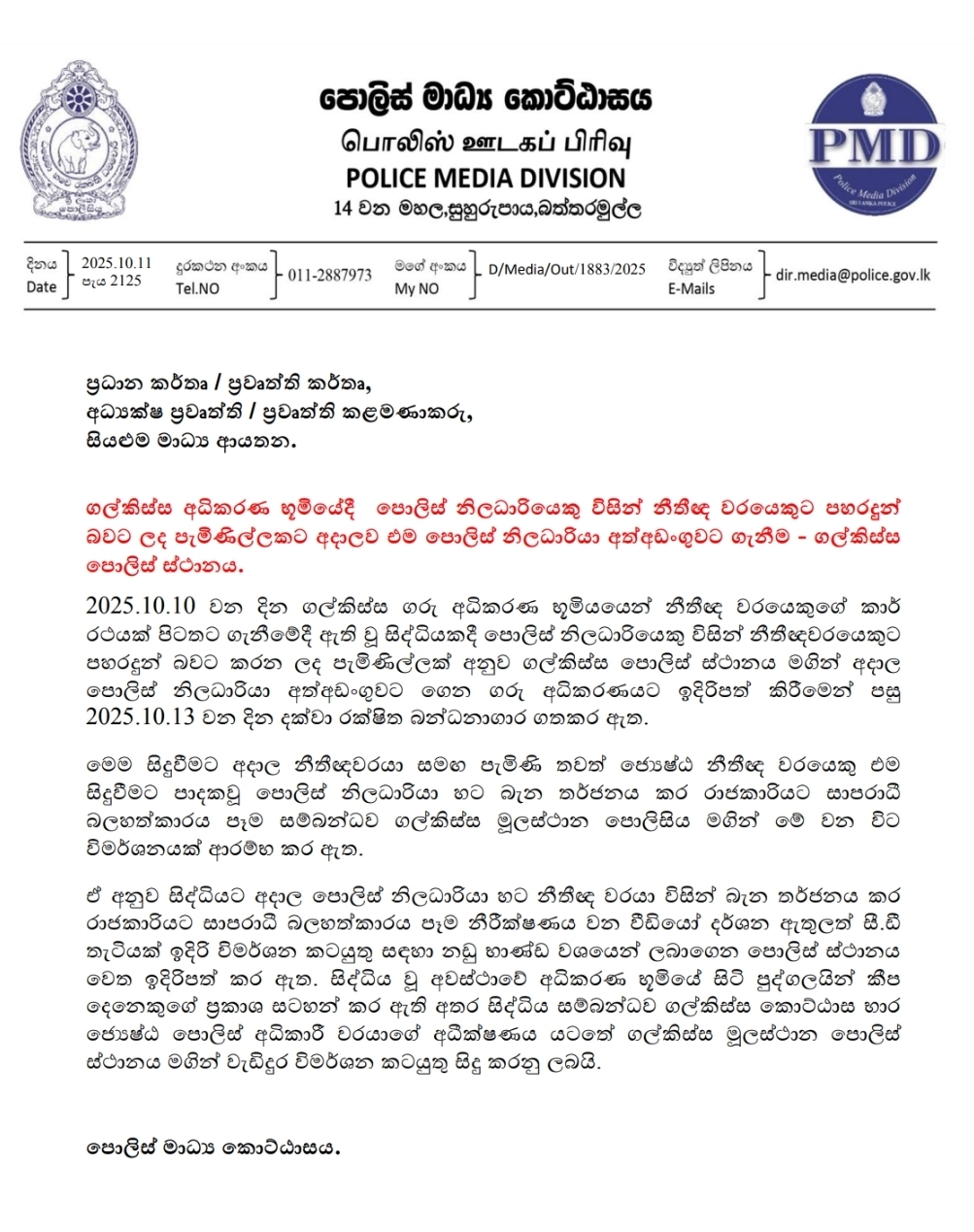 Further inquiries are being carried out under the supervision of the Senior Superintendent of Police for the Mount Lavinia Division. (Newswire)