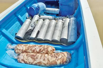 The sea cucumber and the diving equipment that the Navy seized.