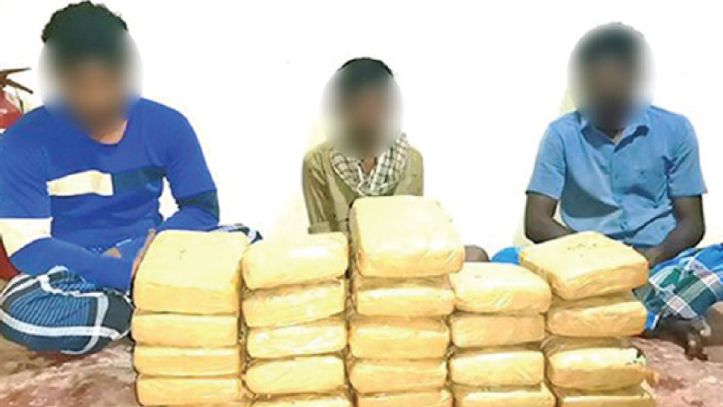 The Sri Lanka Navy conducting regular patrols and search operations in the coastal and sea areas around the country conducted this search operation in island waters off the Delft Island on April 15 and spotted a suspicious Indian dhow in the sea area. Upon search of the suspicious dhow, the Navy found two sacks of Kerala cannabis which were in 23 packages weighing about 62kg and 400g. The operation also led to the apprehension of three suspects in connection to the incident. The gross street value of the seized stock of Kerala cannabis is believed to be over Rs. 20 million.