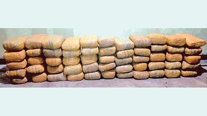 SLNS Agbo in the Northern Naval Command made this apprehension in the beach area of Madagal during the foot patrol, naval personnel took hold of four suspicious sacks at the beach and recovered 55 packages of Kerala cannabis in them. The seized stock of Kerala cannabis weighed about 126.8kg.