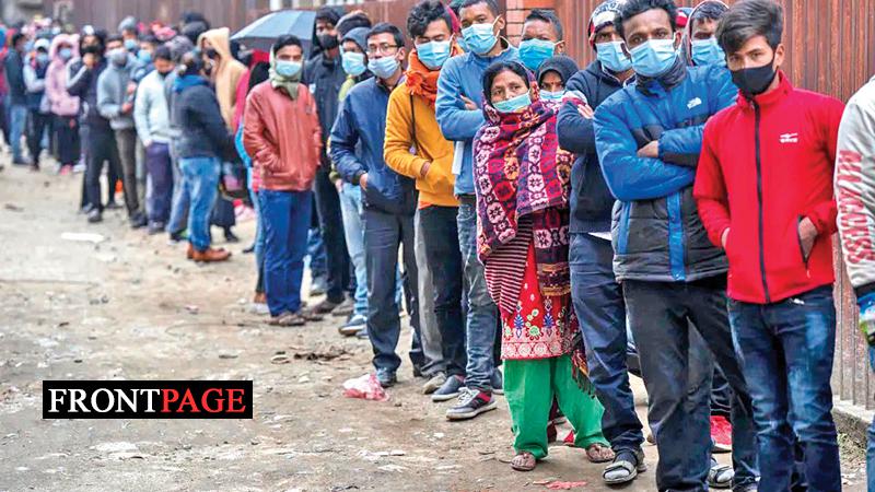 Nepalese people queue up to get vaccinated after the Government made vaccination cards mandatory for people to access public services in Kathmandu, Nepal on Friday.