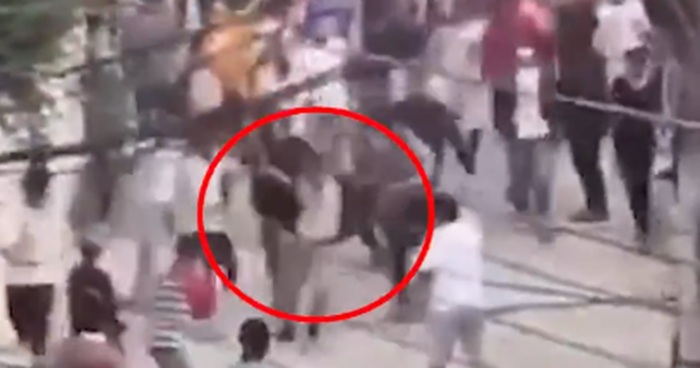 In the video, over two dozen people were seen chasing the man who was running for his life. One person was seen kicking, and others beating him up.