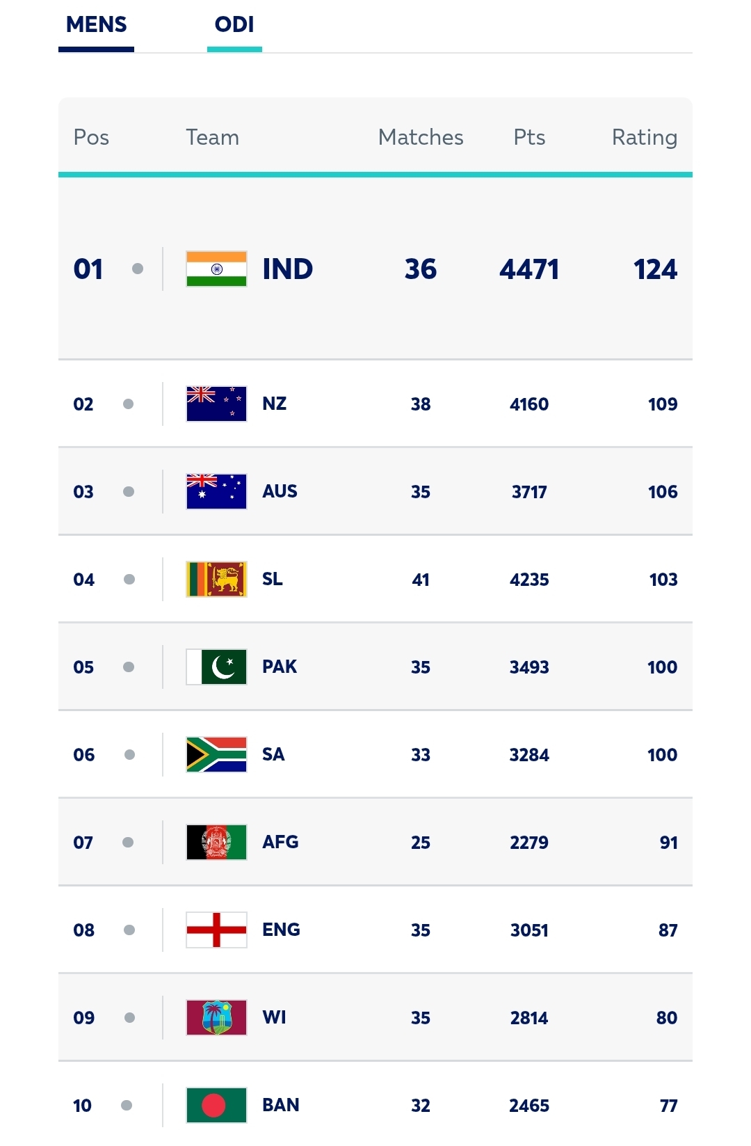 The post New ICC ODI rankings : New movements appeared first on Newswire.