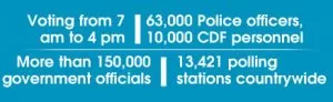 The Police Media Spokesman said that a total of 63,000 police officers have been deployed for the security of the presidential election and other duties including security for the polling and counting centres and special security will be provided to safeguard the sealed ballot boxes during transportation from polling centres to counting centres in all districts including protection from natural disasters and other dangers. A total of 10,000 civil defence personnel have also been deployed to assist the Police and Police Special Task Force (STF) officers have been deployed to conduct Election Day street monitoring mobile trips.
