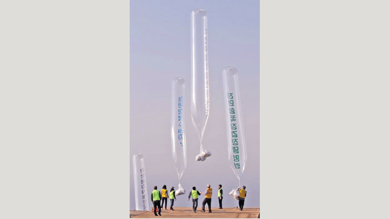 North Korean defectors and South Korean activists release balloons carrying leaflets condemning the North Korean leadership.