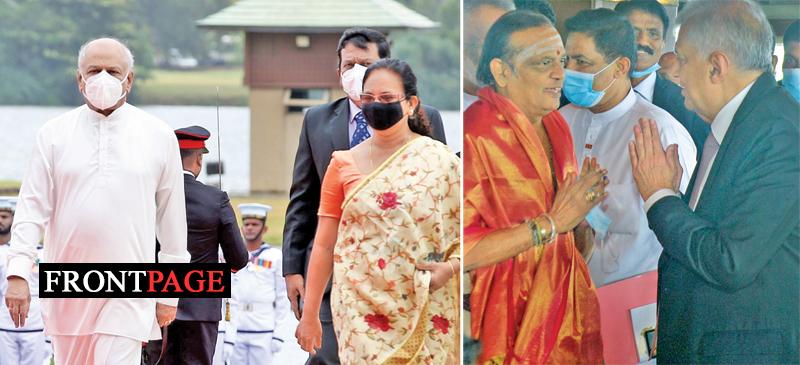 Prime Minister Dinesh Gunawardene arrives in Parliament . | The President meets religious dignitaries.