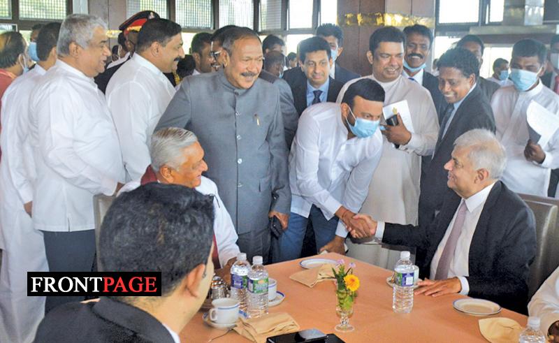 President Ranil Wickremesinghe arrives at the Parliamentary Complex. Speaker Mahinda Yapa Abeywardena is also in the picture.