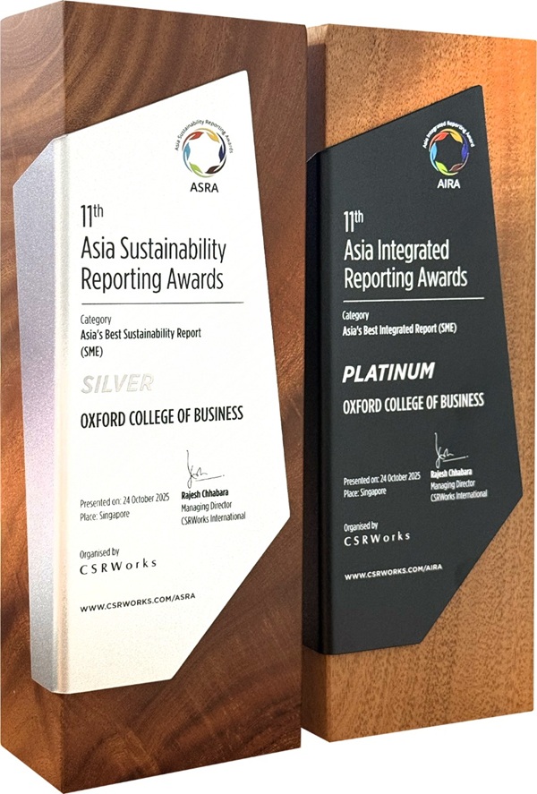 Beyond technical reporting excellence, the jury praised Oxford College of Business for three distinct strengths that position it as a model for Asian institutions of the future: