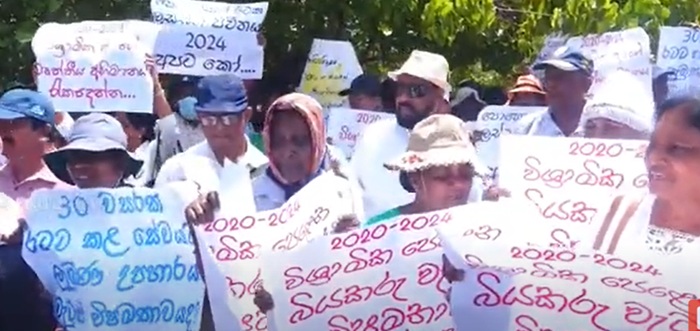 A group of pensioners staged a protest in front of the Presidential Secretariat today, urging the government to address discrepancies in their pension payments.