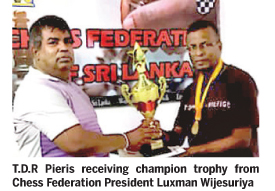 Telge Dantha Ravindra Pieris better known as T.D.R Pieris won the Senior National Chess Championship 2022 – (Over 50 years) in a tie breaker after tying with Derrick Perera with 5 ½ points out of possible seven games. TDR was unbeaten throughout being the Championship . (The event did not held in 2021 due to the Pandemic).