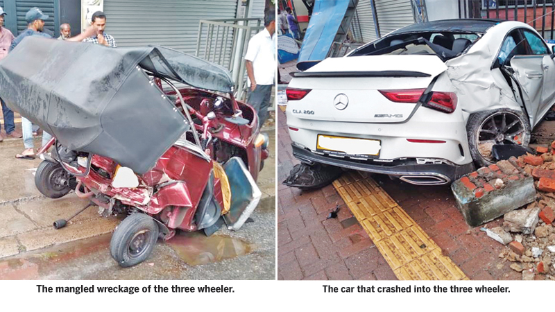 The driver is a resident of Navinna, Maharagama. The car involved in the accident travelling from Kollupitiya towards Colombo Fort had collided with the three wheeler going in the same direction.