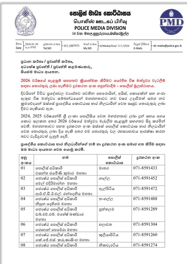 The Police have introduced telephone numbers through which the public can provide information to assist the planned anti‑narcotics operations to be carried out in 2026.