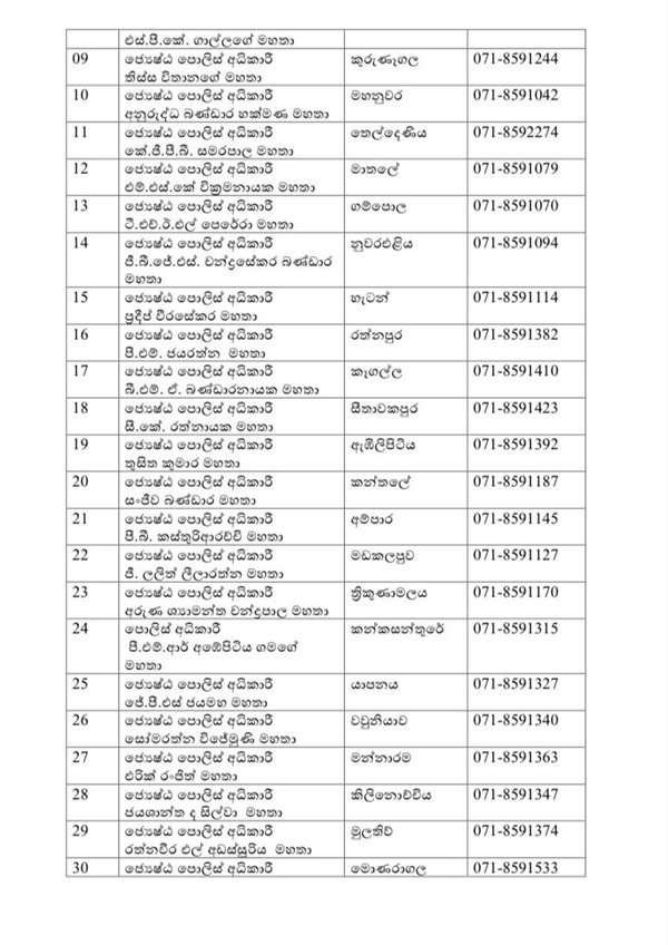 Information can be conveyed to the officers in charge of police divisions via the following telephone numbers. (Newswire)