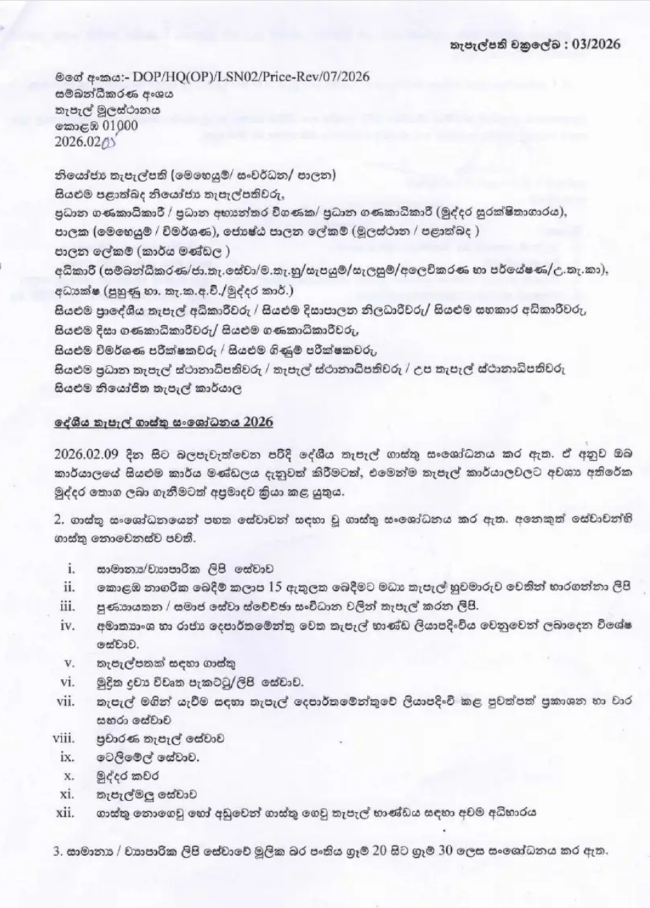The post Postal charges increased in Sri Lanka appeared first on Newswire.