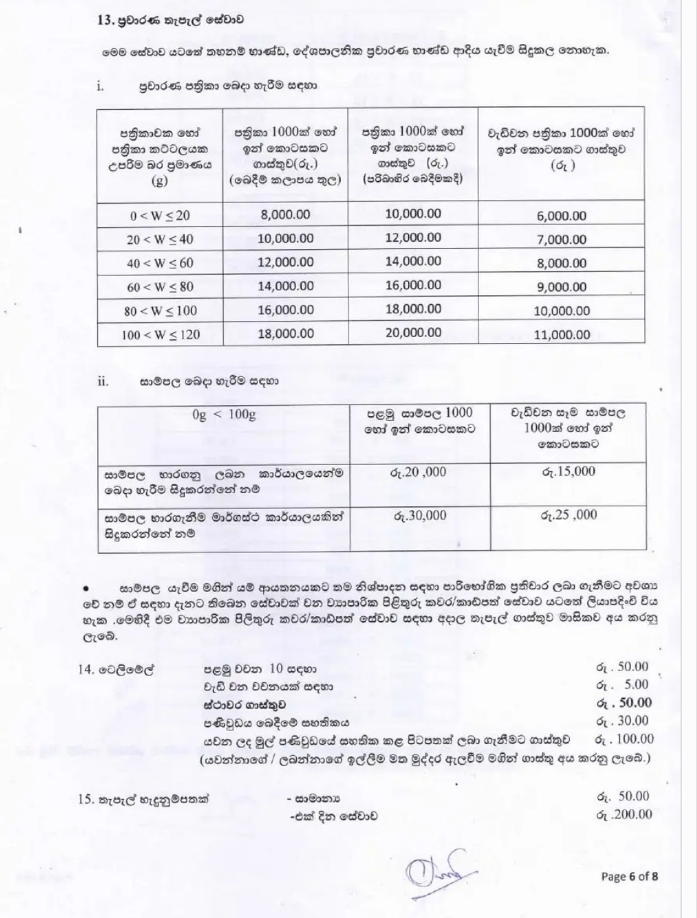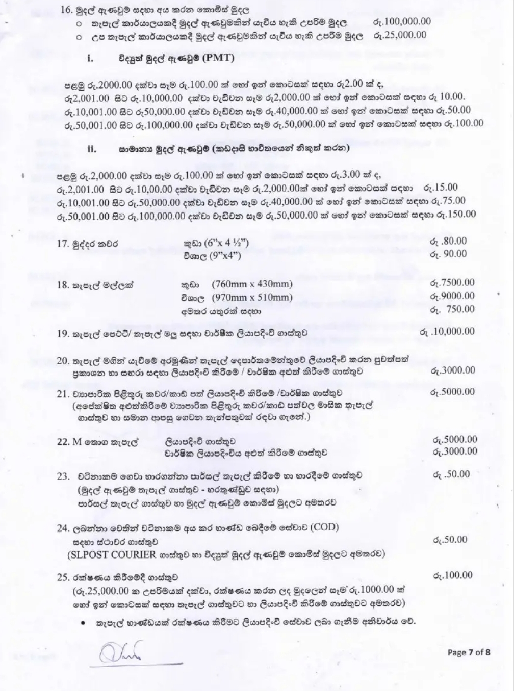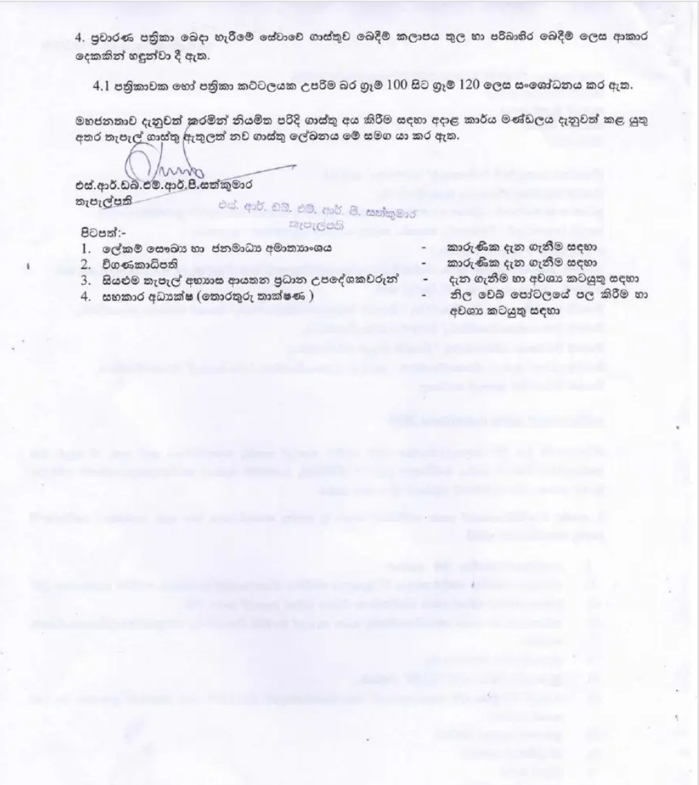 Postal charges increased in Sri Lanka